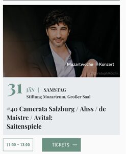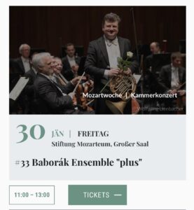 Clara Dent-Bogányi is playing two concerts at the „Mozartwoche“ in Salzburg: 30th January with Baborak Ensemble Plus and Radek Baborak- Moderation Rolando Villazon. 31st January: Camerata Salzburg